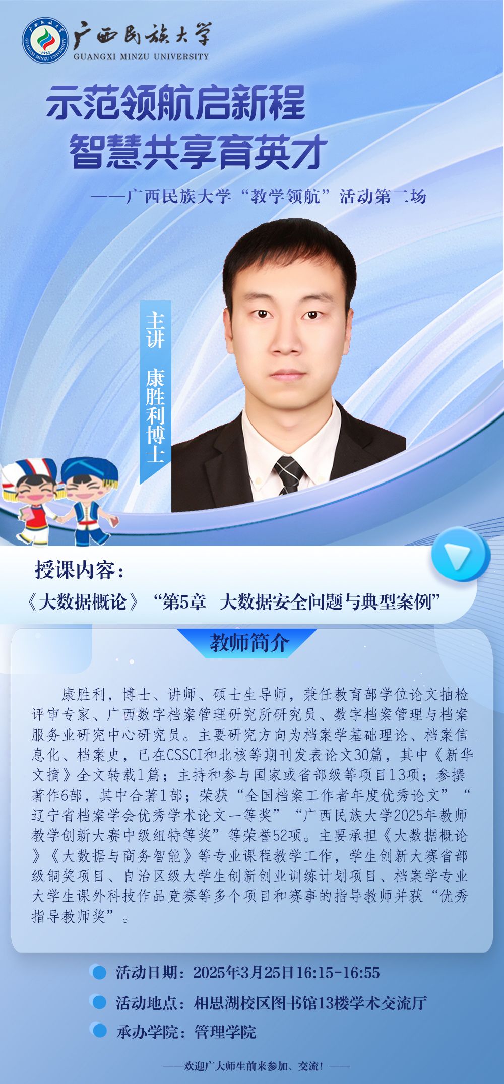 首页 通知公告 中心新闻 教学沙龙 当前位置: 首页 · 通知公告 · 正文 【乐天使 智慧共享育英才】乐天使“教学领航”活动第二场 2025年03月21日 16:06 点击:[] 上一条:慕课西部行大讲堂第五期培训 下一条:教务处/教师教学发展中心关于召开第五届全国教师教学创新大赛广西赛区启动会的通知 【关闭】