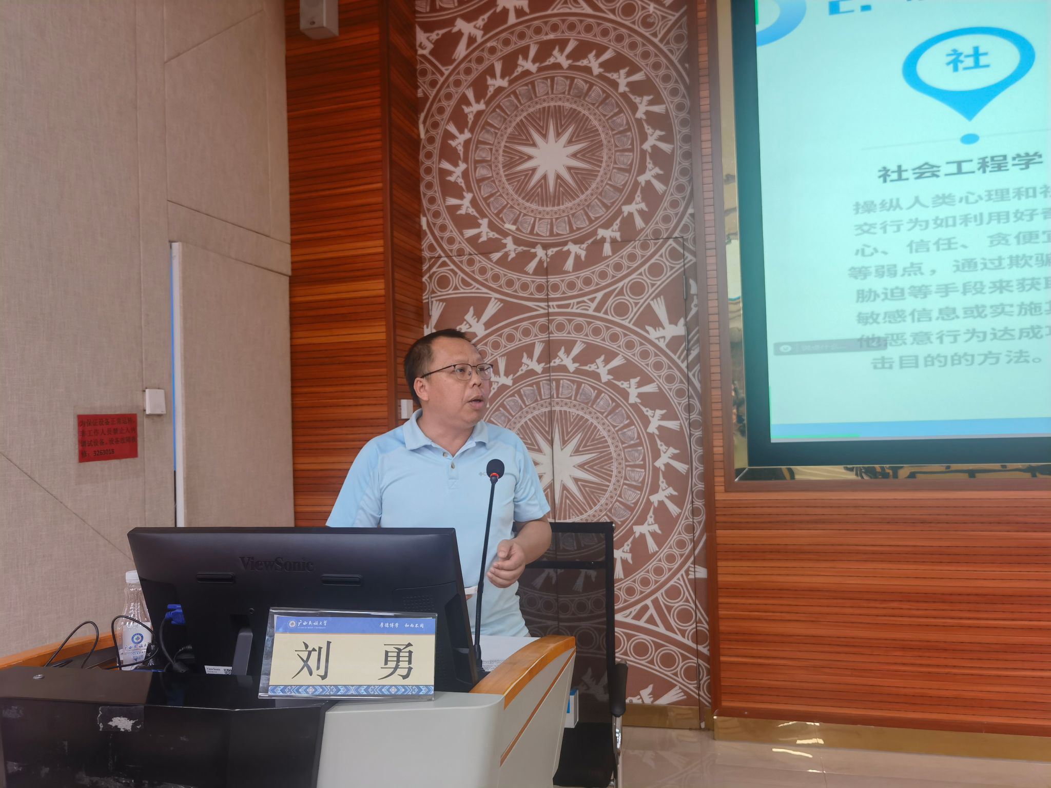 人工智能学院教师刘勇则以《网络安全与数据安全》为题,首先介绍网络安全的定义,应具备的机密性、完整性、可用性,详细说明在日常工作中使用网络时存在的网络安全威胁,数据泄露的途径以及会造成的影响,以真实的案例引导教师应提高警惕,注意网络安全的威胁。讲座还分享了人工智能下数据安全前沿技术与发展趋势,区块链技术与数据安全融合等内容,拓宽了我校教师的视野。